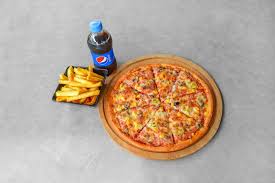Hot Dog Pizza (Sosis, mantar, yeşilbiber, özel sos, pizza peyniri) + Patates Kızartması + İçecek (1 L.)