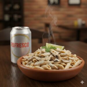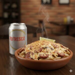 Mexicano Pizza (Tavuk, mantar, jalapeno biberi, özel sos, pizza peyniri) + Patates Kızartması + Kutu İçecek