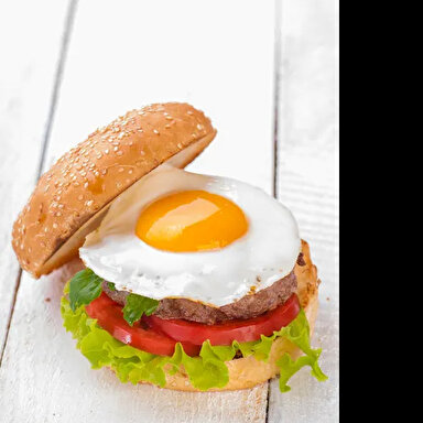 100 g, EL YAPIMI DANA KÖFTE ,YUMURTA, DOMATES , KIVIRCIK MARUL,TURŞU, MAYONEZ ,CHEDDAR PEYNİRİ, KAPYA KÖZ BİBER ,FÜME ET, DİP SOS.YANINDA PATATES KIZARTMASI.