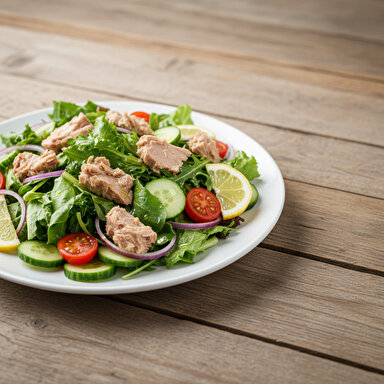 Iceberg marul, havuç, salatalık, domates, mısır, ton balığı