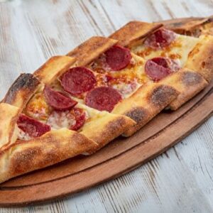 Sucuk, salam, sosis, mantar, domates, biber, mısır, kaşar peyniri, domates sos